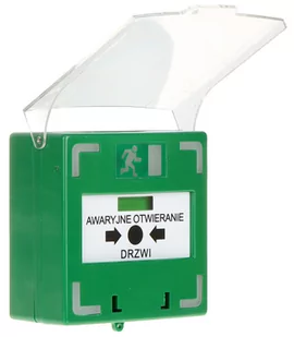 Przycisk do wyzwolenia sygnału otwarcia drzwi w systemach kontroli dostępuResetowanie przycisku odbywa się za pomocą dedykowanego kluczyka