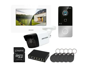Aby rozszerzyć funkcjonalność i zwiększyć monitorowany obszar do wideodomofonu dołączona jest kamera Hikvision. Kamera jest w pełni kompatybilna z aplikacją Hik-Connect i posiada możliwość integracji z monitorem wideodomofonu.