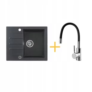 Zlew KGS A 4560 1B1D Black Metallic + bateria KWT 29 Elastic Black Zestaw zlew granitowy z linii KGS A oraz bateria KWT 29 Elastic Black to połączenie idealne. Odporny na uszkodzenia zlewozmywak i elastyczna bateria to funkcjonalny sprzęt dobrany tak, by zapewnić Twojej kuchni stylowy wygląd i wygodę potrzebną na co dzień. Zlewozmywak wykonany z granitu najwyższej jakości w kolorze Black Metallic to piękny czarny sprzęt z niewielkimi połyskującymi drobinkami. Perfekcyjnie dopasowana do niego czarna bateria z chromowymi elementami spełni oczekiwania nawet najbardziej wymagających użytkowników. Dzięki elastycznej wylewce zyskasz komfort podczas wykonywania codziennych obowiązków.