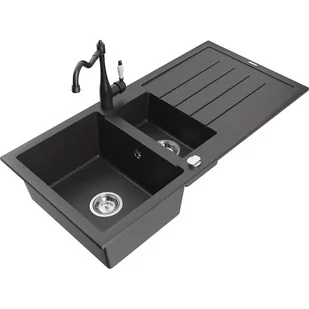 Czarny nakrapiany Kolor baterii: Czarny nakrapiany Zlewozmywak: Rozmiar: 1000x500x200 mm Głębokość komory: 190 mm (większa), 115 mm (mniejsza) Wymiary komory: 430x330 mm (większa), 340x170 mm (mniejsza) Średnica odpływu: