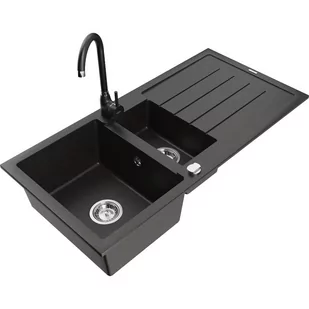 Czarny/Złoty metalik Kolor baterii: Czarny Specyfikacja produktu: Zlewozmywak: Rozmiar: 1000x500x200 mm Głębokość komory: 190 mm (większa), 115 mm (mniejsza) Wymiary komory: