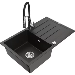 Czarny/Złoty metalik Kolor baterii: Czarny/Chrom Dane techniczne: Zlewozmywak: Rozmiar: 795x495x200 mm Głębokość komory: 200 mm Wymiary komory: