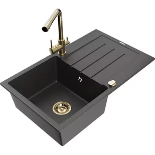 Czarny nakrapiany Kolor baterii: Złoty Dane techniczne: Zlewozmywak: Rozmiar: 795x495x200 mm Głębokość komory: 200 mm Wymiary komory: