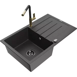 Czarny nakrapiany Kolor baterii: Czarny/Złoty Dane techniczne: Zlewozmywak: Rozmiar: 795x495x200 mm Głębokość komory: 200 mm Wymiary komory: