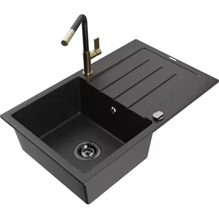 Czarny/Srebrny metalik Kolor baterii: Czarny/Złoty Dane techniczne: Zlewozmywak: Rozmiar: 795x495x200 mm Głębokość komory: 200 mm Wymiary komory: