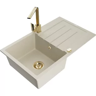 Beżowy Kolor baterii: Złoty Dane techniczne: Zlewozmywak: Rozmiar: 795x495x200 mm Głębokość komory: 200 mm Wymiary komory: