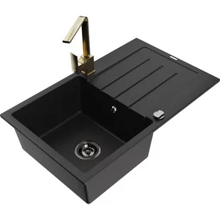 Czarny Kolor baterii: Złoty Dane techniczne: Zlewozmywak: Rozmiar: 795x495x200 mm Głębokość komory: 200 mm Wymiary komory: