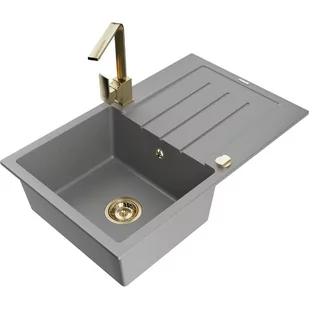 Szary Kolor baterii: Złoty Dane techniczne: Zlewozmywak: Rozmiar: 795x495x200 mm Głębokość komory: 200 mm Wymiary komory: