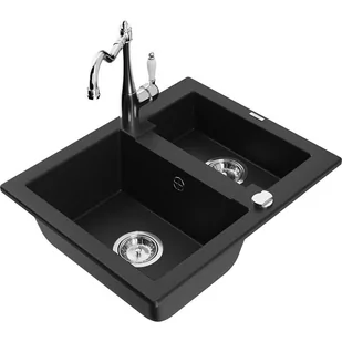 Czarny Kolor baterii: Chrom Dane techniczne: Zlewozmywak: Rozmiar: 582x475x177 mm Głębokość komory: 162 mm (większa), 102 mm (mniejsza) Wymiary komory: