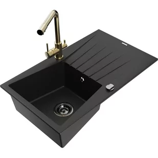 Czarny Kolor baterii: Złoty Dane techniczne: Zlewozmywak: Rozmiar: 775x470x200 mm Głębokość komory: 180 mm Wymiary komory: