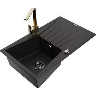 Czarny Kolor baterii: Złoty Dane techniczne: Zlewozmywak: Rozmiar: 775x470x200 mm Głębokość komory: 180 mm Wymiary komory: