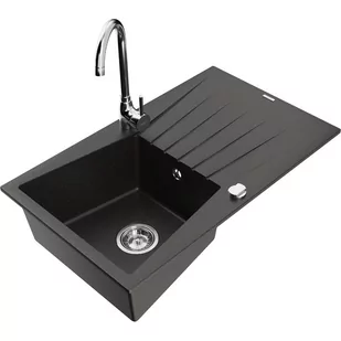 Chrom Materiał: Granit (80% kruszywo granitowe 20% żywice) Otwór przelewowy: Tak Otwory: ( bateria, automat ) 2 Montaż: Uniwersalny, możliwość montażu z ociekaczem po lewej lub prawej stronie Wysoka odporność na zarysowania i przebarwienia Odporność na szok termiczny Powierzchnia ułatwiająca czyszczenie Bateria kuchenna: