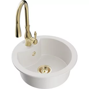 Biały Kolor baterii: Złoty Dane techniczne: Zlewozmywak: Rozmiar: 488x488x167 mm Głębokość komory: 157 mm Szerokość komory:
