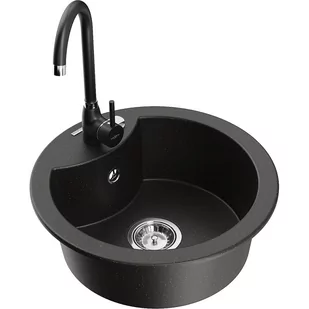 Granit (80% kruszywo granitowe 20% żywice) Otwór przelewowy: Tak Otwory: ( bateria, automat ) 2 Wysoka odporność na zarysowania i przebarwienia Odporność na szok termiczny Powierzchnia ułatwiająca czyszczenie Jeden dodatkowy podfrezowany otwór do samodzielnego wybicia ø35 Bateria kuchenna: Materiał: Mosiądz Kolor: Czarny Głowica: