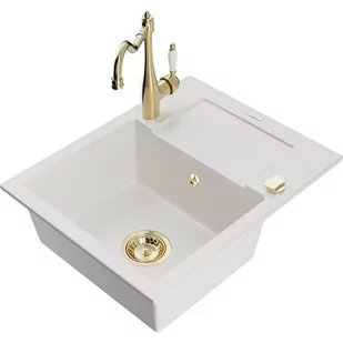 Biały Kolor baterii: Złoty Dane techniczne: Zlewozmywak: Rozmiar: 576x465x174 mm Głębokość komory: 164 mm Wymiary komory: