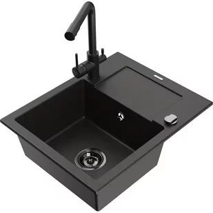 Czarny Materiał: Granit (80% kruszywo granitowe 20% żywice) Otwór przelewowy: Tak Otwory: ( bateria, automat ) 2 Montaż: Uniwersalny, możliwość montażu z ociekaczem po lewej lub prawej stronie Wysoka odporność na zarysowania i przebarwienia Odporność na szok termiczny Powierzchnia ułatwiająca czyszczenie Dwa dodatkowe podfrezowane otwory do samodzielnego wybicia ø35 Bateria kuchenna: