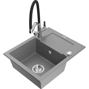 Szary Kolor baterii: Czarny/Chrom Dane techniczne: Zlewozmywak: Rozmiar: 576x465x174 mm Głębokość komory: 164 mm Wymiary komory: