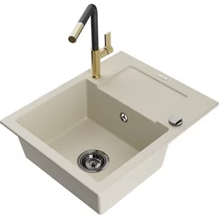 Beżowy Kolor baterii: Czarny/Złoty Dane techniczne: Zlewozmywak: Rozmiar: 576x465x174 mm Głębokość komory: 164 mm Wymiary komory: