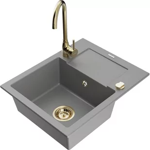 Szary Kolor baterii: Złoty Dane techniczne: Zlewozmywak: Rozmiar: 576x465x174 mm Głębokość komory: 164 mm Wymiary komory: