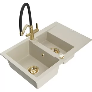 Beżowy Kolor baterii: Czarny/Złoty Dane techniczne: Zlewozmywak: Rozmiar: 737x475x177 mm Głębokość komory: 167 mm (większa), 107 mm (mniejsza) Wymiary komory: