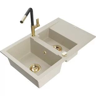 Beżowy Kolor baterii: Czarny/Złoty Dane techniczne: Zlewozmywak: Rozmiar: 737x475x177 mm Głębokość komory: 167 mm (większa), 107 mm (mniejsza) Wymiary komory:
