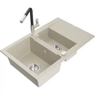 Beżowy Kolor baterii: Czarny/Chrom Dane techniczne: Zlewozmywak: Rozmiar: 737x475x177 mm Głębokość komory: 167 mm (większa), 107 mm (mniejsza) Wymiary komory: