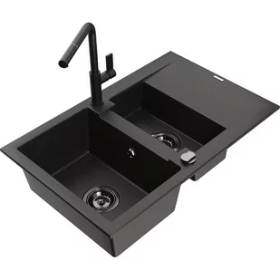Czarny Materiał: Granit (80% kruszywo granitowe 20% żywice) Otwór przelewowy: Tak Otwory: ( bateria, automat ) 2 Montaż: Uniwersalny, możliwość montażu z ociekaczem po lewej lub prawej stronie Wysoka odporność na zarysowania i przebarwienia Odporność na szok termiczny Powierzchnia ułatwiająca czyszczenie Bateria kuchenna: