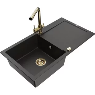 Czarny/Złoty metalik Kolor baterii: Złoty Dane techniczne: Zlewozmywak: Rozmiar: 900x500x190 mm Głębokość komory: 180 mm Wymiary komory: