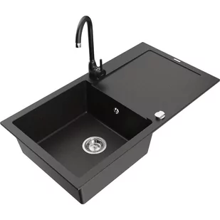 Czarny/Złoty metalik Kolor baterii: Czarny Specyfikacja produktu: Zlewozmywak: Rozmiar: 900x500x190 mm Głębokość komory: 180 mm Wymiary komory:
