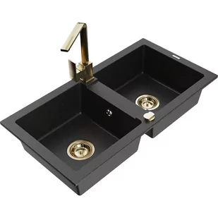 Czarny/Srebrny metalik Kolor baterii: Złoty Dane techniczne: Zlewozmywak: Rozmiar: 820x436x161 mm Głębokość komory: 151 mm Wymiary komory: