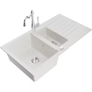 Biały Kolor baterii: Chrom Dane techniczne: Zlewozmywak: Rozmiar: 900x505x200 mm Głębokość komory: 180 mm (większa), 115 mm (mniejsza) Wymiary komory: