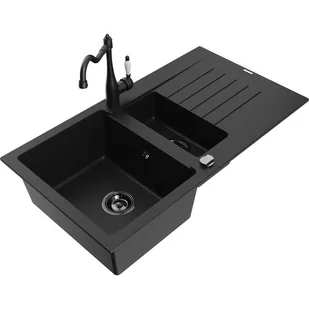 Czarny Kolor baterii: Czarny Dane techniczne: Zlewozmywak: Rozmiar: 900x505x200 mm Głębokość komory: 180 mm (większa), 115 mm (mniejsza) Wymiary komory: