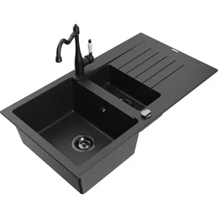 Czarny/Srebrny metalik Kolor baterii: Czarny Dane techniczne: Zlewozmywak: Rozmiar: 900x505x200 mm Głębokość komory: 180 mm (większa), 115 mm (mniejsza) Wymiary komory: