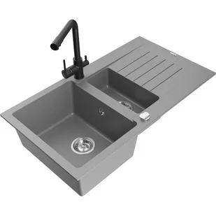 Szary Kolor baterii: Czarny Dane techniczne: Zlewozmywak: Rozmiar: 900x505x200 mm Głębokość komory: 180 mm (większa), 115 mm (mniejsza) Wymiary komory:
