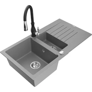 Szary Kolor baterii: Czarny Dane techniczne: Zlewozmywak: Rozmiar: 900x505x200 mm Głębokość komory: 180 mm (większa), 115 mm (mniejsza) Wymiary komory: