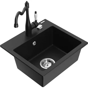 Czarny Kolor baterii: Czarny Dane techniczne: Zlewozmywak: Rozmiar: 435x410x171 mm Głębokość komory: 161 mm Wymiary komory: