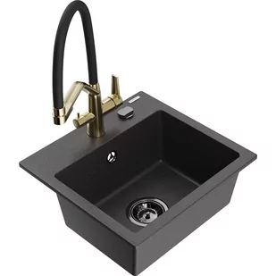 Czarny nakrapiany Kolor baterii: Czarny/Złoty Dane techniczne: Zlewozmywak: Rozmiar: 435x410x171 mm Głębokość komory: 161 mm Wymiary komory:
