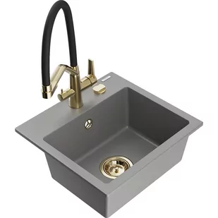 Szary Kolor baterii: Czarny/Złoty Dane techniczne: Zlewozmywak: Rozmiar: 435x410x171 mm Głębokość komory: 161 mm Wymiary komory: