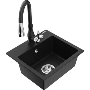 Czarny Kolor baterii: Czarny Dane techniczne: Zlewozmywak: Rozmiar: 435x410x171 mm Głębokość komory: 161 mm Wymiary komory: