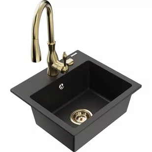 Czarny/Złoty metalik Kolor baterii: Złoty Dane techniczne: Zlewozmywak: Rozmiar: 435x410x171 mm Głębokość komory: 161 mm Wymiary komory: