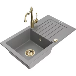 Szary Kolor baterii: Złoty Dane techniczne: Zlewozmywak: Rozmiar: 752x436x161 mm Głębokość komory: 151 mm Wymiary komory: