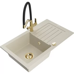 Beżowy Kolor baterii: Czarny/Złoty Dane techniczne: Zlewozmywak: Rozmiar: 752x436x161 mm Głębokość komory: 151 mm Wymiary komory: