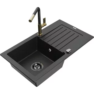 Czarny/Srebrny metalik Kolor baterii: Czarny/Złoty Dane techniczne: Zlewozmywak: Rozmiar: 752x436x161 mm Głębokość komory: 151 mm Wymiary komory: