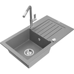 Szary Kolor baterii: Chrom/Szary Dane techniczne: Zlewozmywak: Rozmiar: 752x436x161 mm Głębokość komory: 151 mm Wymiary komory: