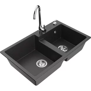 Czarny nakrapiany Kolor baterii: Chrom Dane techniczne: Zlewozmywak: Rozmiar: 800x500x190 mm Głębokość komory: 180 mm (większa), 180 mm (mniejsza) Wymiary komory: