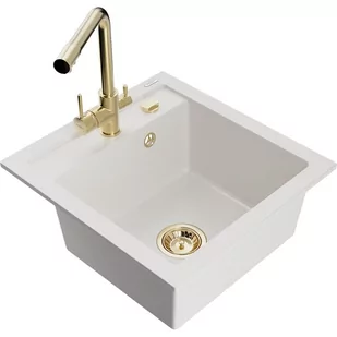 Biały Kolor baterii: Złoty Dane techniczne: Zlewozmywak: Rozmiar: 520x490x210 mm Głębokość komory: 200 mm Wymiary komory: