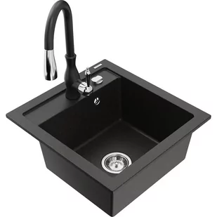Granit (80% kruszywo granitowe 20% żywice) Otwór przelewowy: Tak Otwory: ( bateria, automat ) 2 Wysoka odporność na zarysowania i przebarwienia Odporność na szok termiczny Powierzchnia ułatwiająca czyszczenie Jeden dodatkowy podfrezowany otwór do samodzielnego wybicia ø35 Bateria kuchenna: Materiał: Mosiądz Kolor: Czarny Głowica: