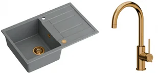Zestaw zawiera zlewozmywak MORGAN 111 GraniteQ SILVER STONE + bateria kuchenna JODIE Q LINE SLIM+ syfon Push-2-Open save space z odpływem 3,5" SteelQ PVD miedziany