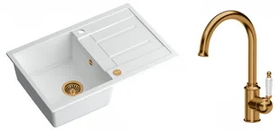 Zestaw zawiera zlewozmywak MORGAN 111 GraniteQ SNOW WHITE + bateria kuchenna RACHEL Q LINE + syfon save space z odpływem 3,5" SteelQ PVD miedziany