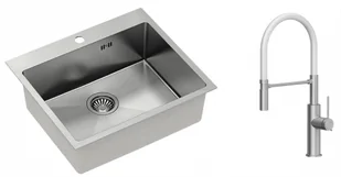 Zestaw zawiera zlewozmywak stalowy RUSSEL 110 STAL SZCZOTKOWANA + bateria kuchenna GEMMA Q LINE SLIM + syfon save space z odpływem 3,5"